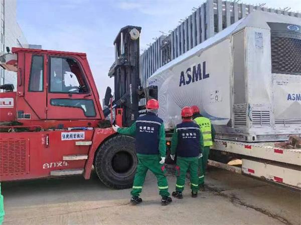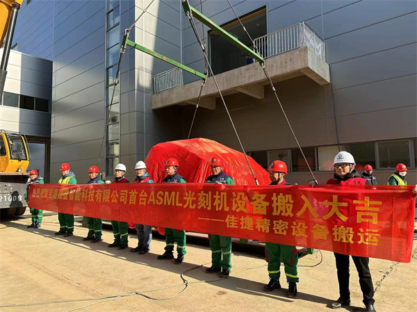 蘇州佳捷搬運(yùn)感恩客戶的信任以及ASML設(shè)備商的認(rèn)可。蕪湖微顯智能科技首臺(tái)ASML光刻機(jī)安全順利搬入再顯佳捷集團(tuán)蘇州佳捷搬運(yùn)施工團(tuán)隊(duì)精密設(shè)備搬運(yùn)工匠鐵軍風(fēng)范。