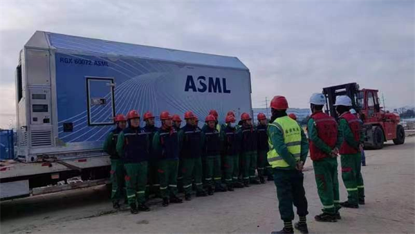 2023年12月20日佳捷集團(tuán)旗下專業(yè)從事精密設(shè)備搬運(yùn)的蘇州佳捷搬運(yùn)公司承擔(dān)蕪湖微顯智能科技首臺(tái)ASML光刻機(jī)搬入,經(jīng)過蘇州佳捷精密設(shè)備搬運(yùn)工匠鐵軍的團(tuán)隊(duì)合作,搬運(yùn)流程熟練操作,蕪湖微顯智能科技首臺(tái)ASML光刻機(jī)安全搬入大吉。